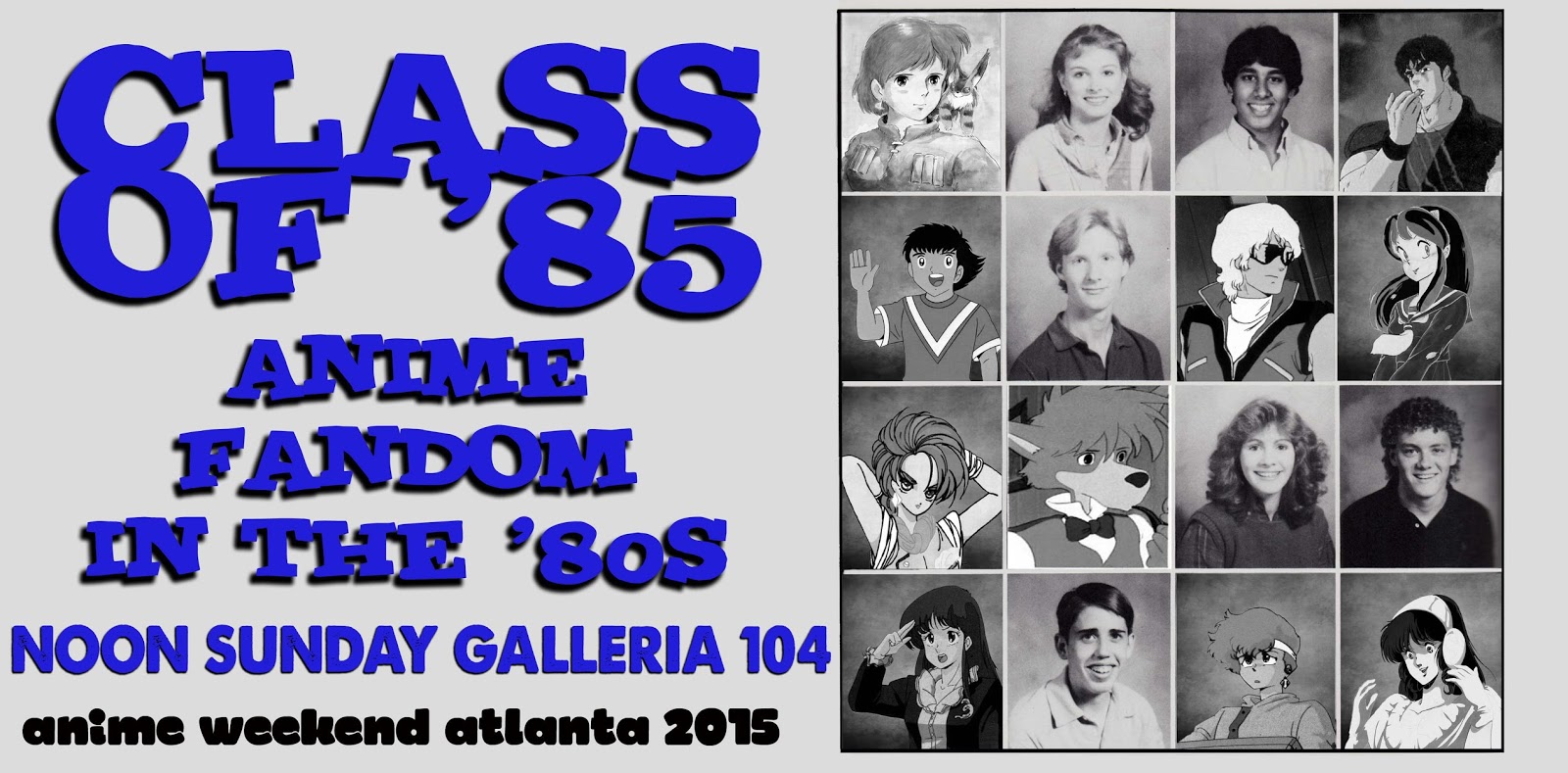 Then on Sunday it's another time for reflection. We'll look back at what anime fandom was like thirty years ago in the dark days of 1985. How did anime fandom begin in the time before the internet? What sort of activities did these stone-age fans occupy their pre-Nintendo days with? And what was the difference between VHS and Beta, anyway? Join us for Class Of '85.