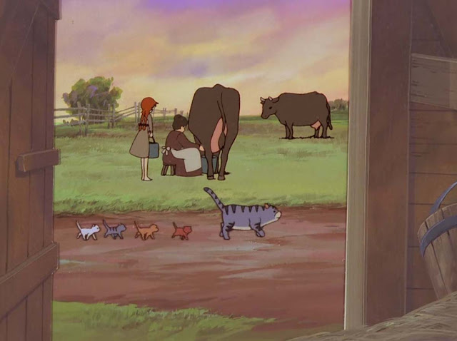 Given free rein with Anne, Hayao Miyazaki probably would have placed more emphasis on fantasy segments conjured out of Anne’s more whimsical notions. But Takahata - whose own daughter was Anne’s age - put his foot down, keeping the show firmly rooted in PEI’s famous red soil, perhaps hastening Miyazaki’s exit towards TMS and the direction of a popular Lupin III film. Akage no Anne shares the same sensibility as the rest of the World Masterpiece Cinematic Universe; action and spectacle are underplayed in favor of characters and feelings, set against well-researched architecture and lush watercolored backgrounds. Takahata’s quieter, grounded Anne has an emotional weight it might lose if set amidst Miyazaki’s trademark contrabulous fabtraptions and death-defying action sequences. Anne would also be Takahata’s swan song at Nippon Animation; next for him would be Chie The Brat for TMS.